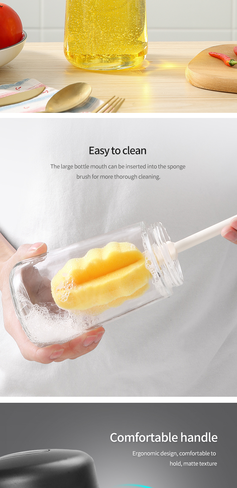 - Chai thủy tinh thiết kế thon dài có tay cầm chắc chắn dễ sử dụng