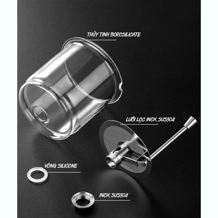 - Dung tích: 500ml - Chất liệu: Thủy tinh Borosilicate, Inox SUS 304, nhựa PC chịu nhiệt - Giới hạn nhiệt độ: -30 độ C đến 150 độ C