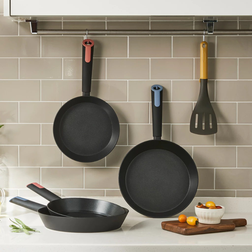 - Tay cầm bằng nhựa bakelite với thiết kế dễ cầm nắm, chống nóng khi nấu nướng.