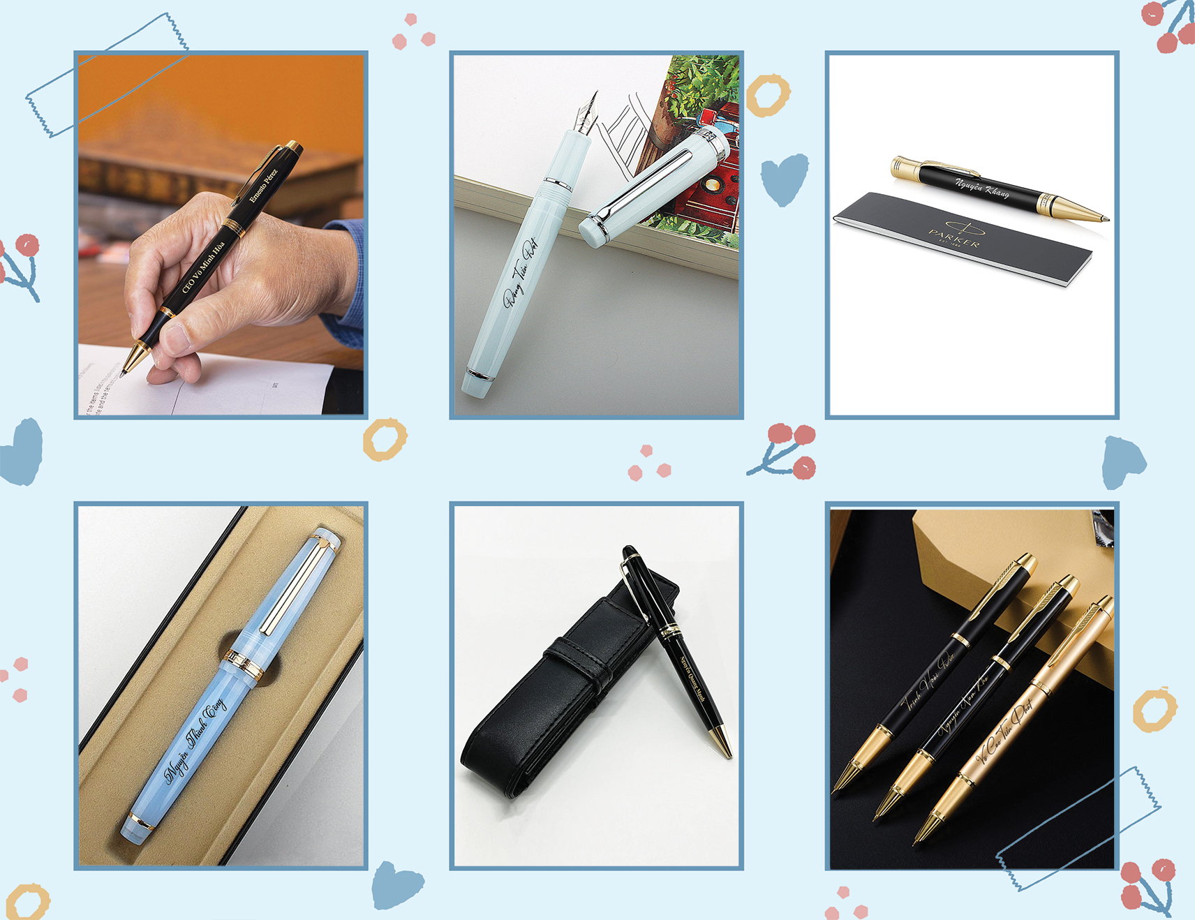 Một trong những món quà tặng phổ biến là bút ký khắc tên, đó là một món quà cá nhân hóa độc đáo và mang tính thẩm mỹ cao.