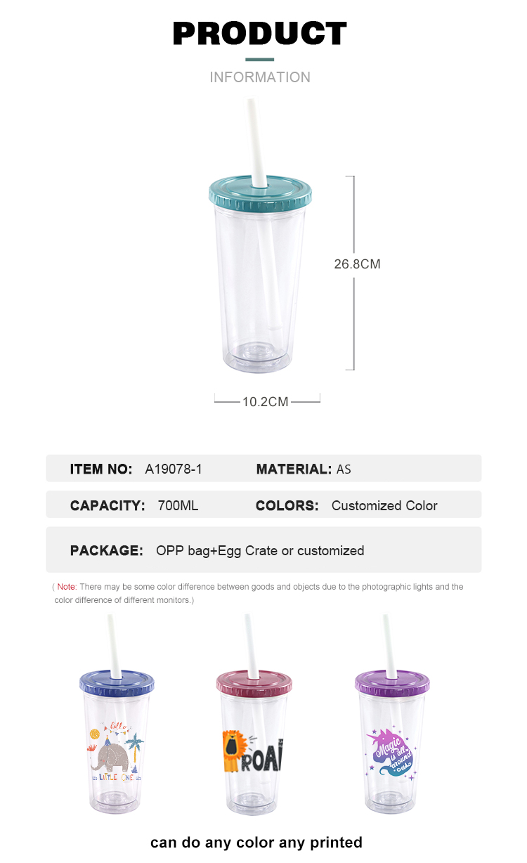 Ly nhựa hai lớp kèm ống hút C-A19078-1