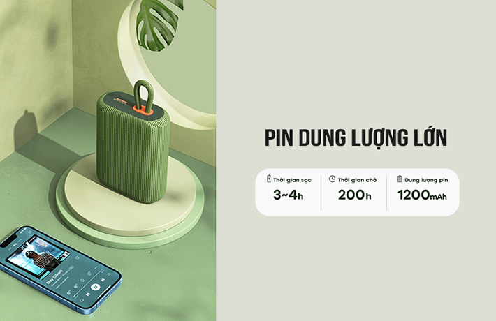 Loa Bluetooth Remax RB-M7 sở hữu viên pin dung lượng lớn 1200mAh cùng các công nghệ hiện đại cho thời gian sử dụng liên tục lên đến 4 giờ chỉ sau một lần sạc đầy kéo dài khoảng 3 giờ. Thời gian chờ của loa là 200 giờ vì vậy bạn không phải lo lắng chiếc loa của mình sẽ nhanh chóng hết pin khi không sử dụng trong một thời gian dài. Hãy nạp đầy năng lượng cho loa để sẵn sàng chơi vui vẻ trong các cuộc party, off team với bạn bè và người thân trở nên trọn vẹn.