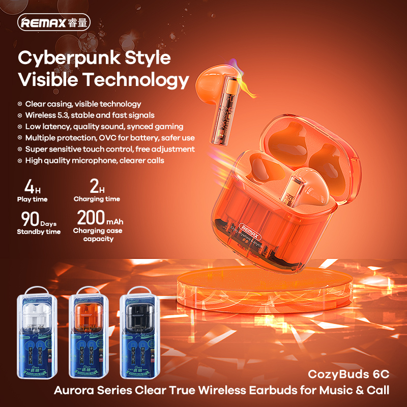 REMAX Aurora Series Clear True Wireless Earbuds for Music & Call CozyBuds 6C