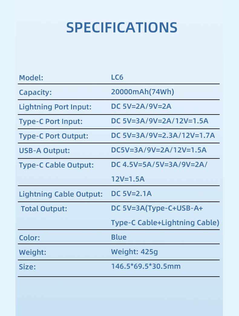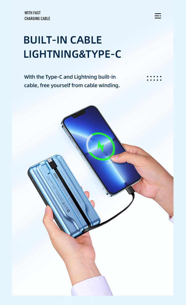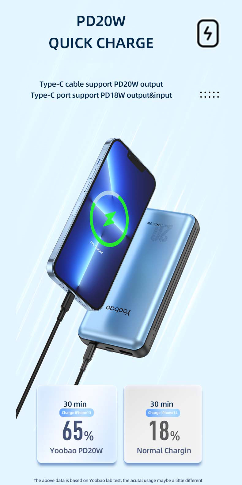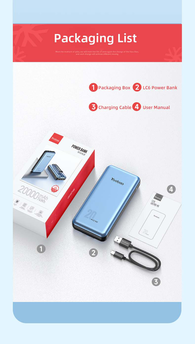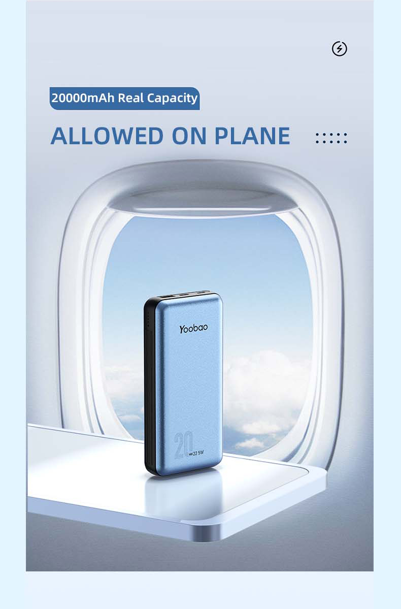 Sạc dự phòng Yoobao sạc nhanh LC6 Built-in Cable PD3.0/QC3.0/SCP22.5W Quick Charge Power Bank 20000mAh, Type-C and Lightning Cable, Exquisite Shell Finish
