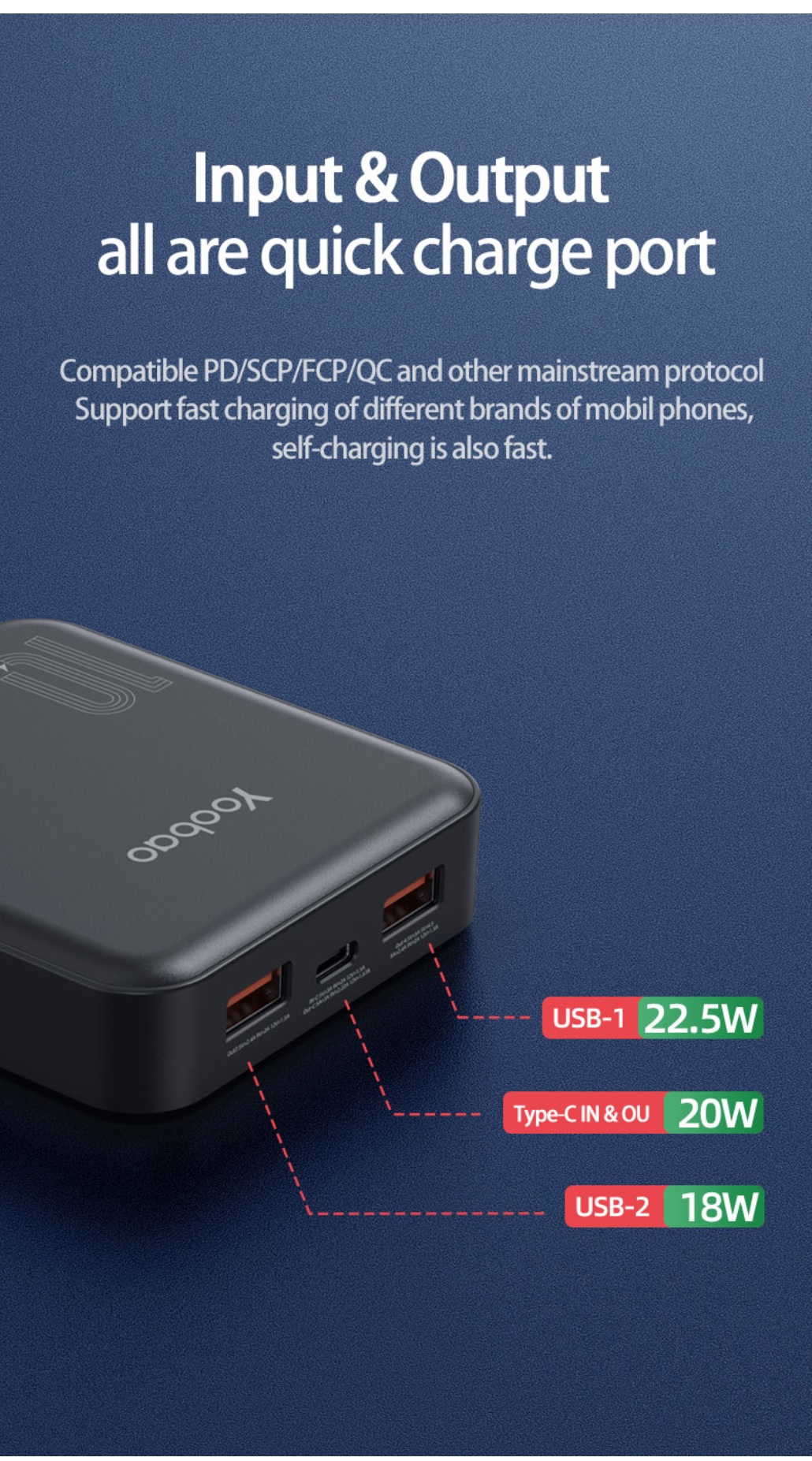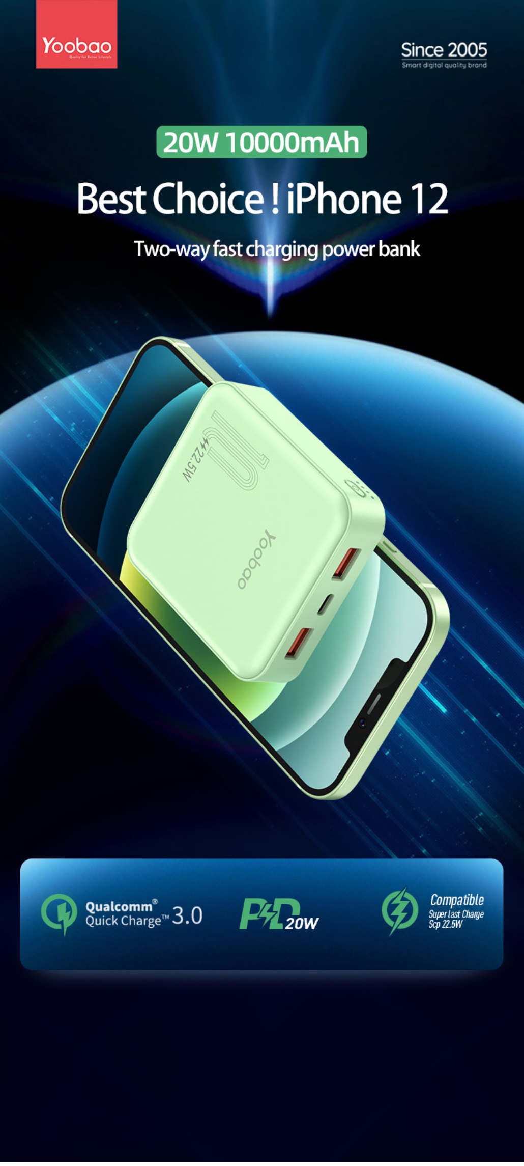 Sạc dự phòng Yoobao sạc nhanh M4PD Classic Cube PD3.0/QC3.0/SCP Quick Charge Dual Output Power Bank 10000mAh