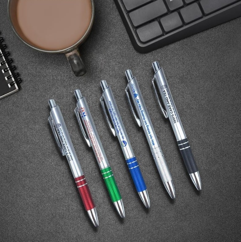 • Chất liệu: Nhựa • Màu sắc sẵn có: Đỏ, xanh lá, xanh dương, bạc, đen. • Cấu trúc: bút dạng bấm