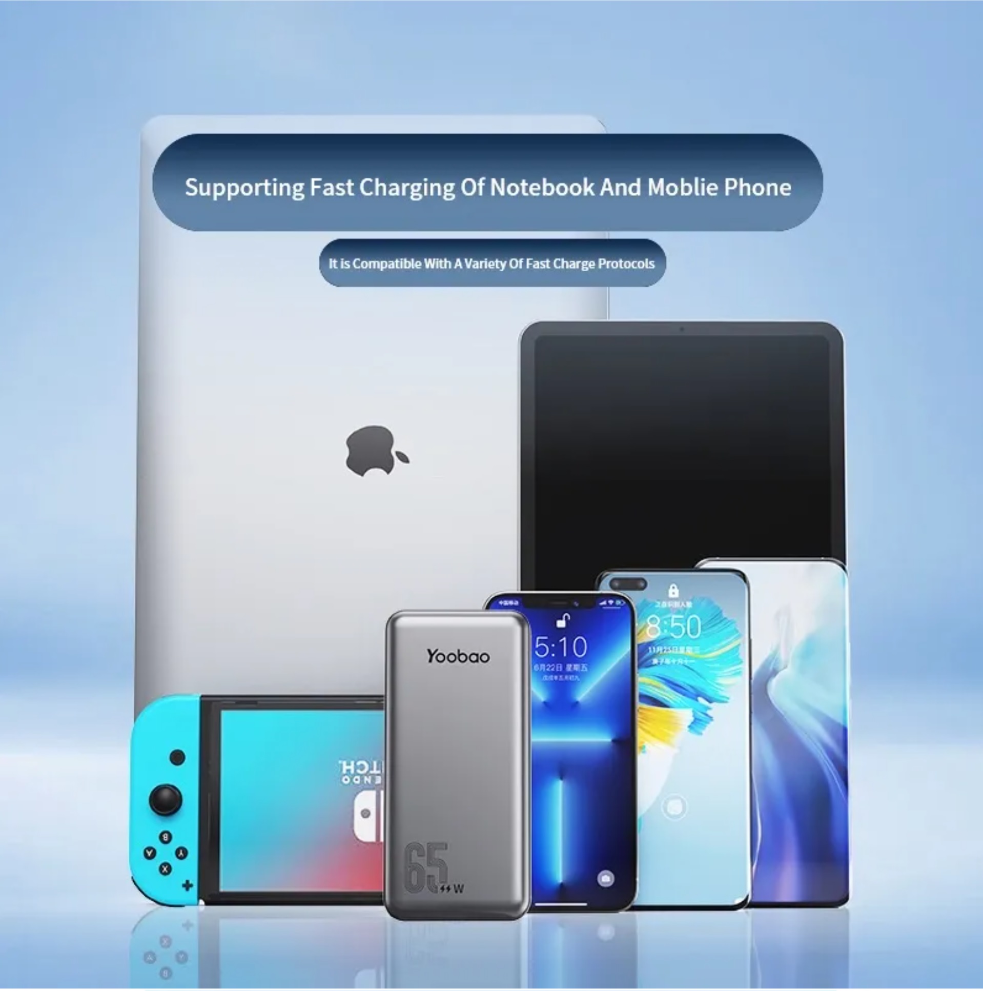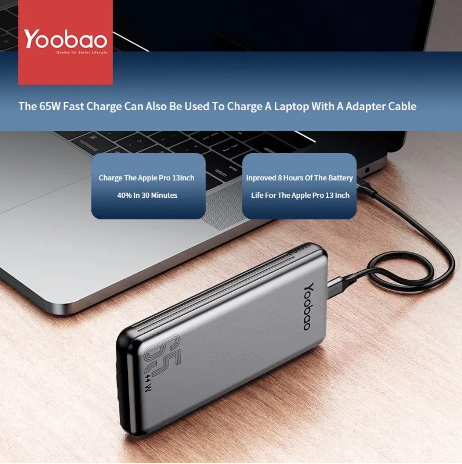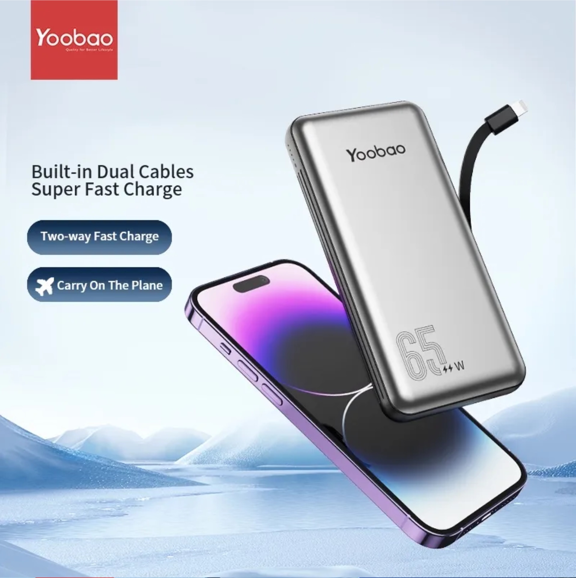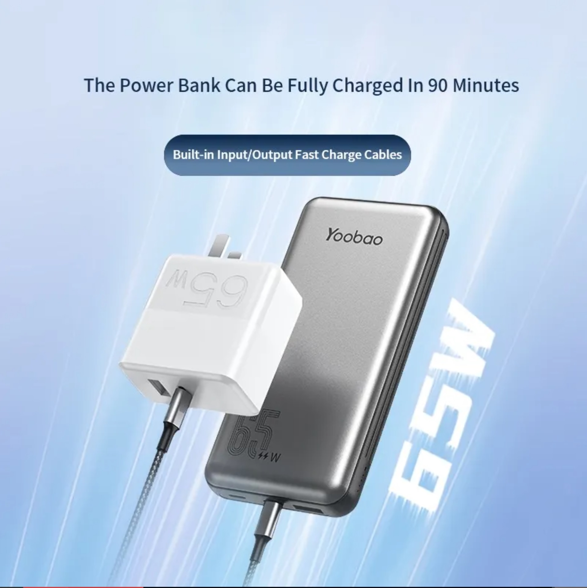 Yoobao Built-in Cable PD65W/QC3.0 60W/SCP22.5W Quick Charge Power Bank 20000mAh, Type-C and Lightning Cable, Exquisite Shell Finish